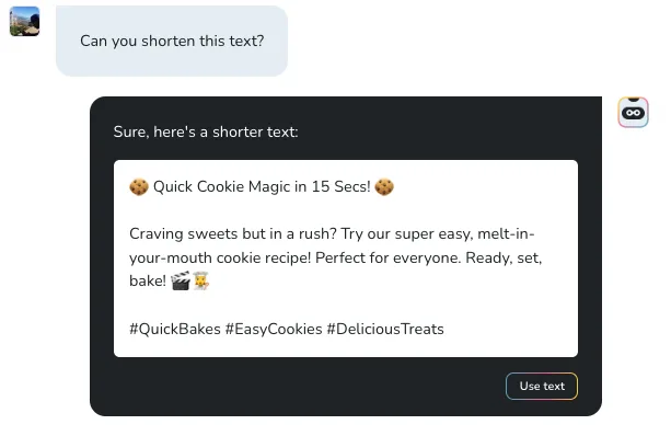 - If you’re especially busy or lacking creativity, you can can produce entire social media posts, including text, hashtags, and emojis, with AI, like I did here: