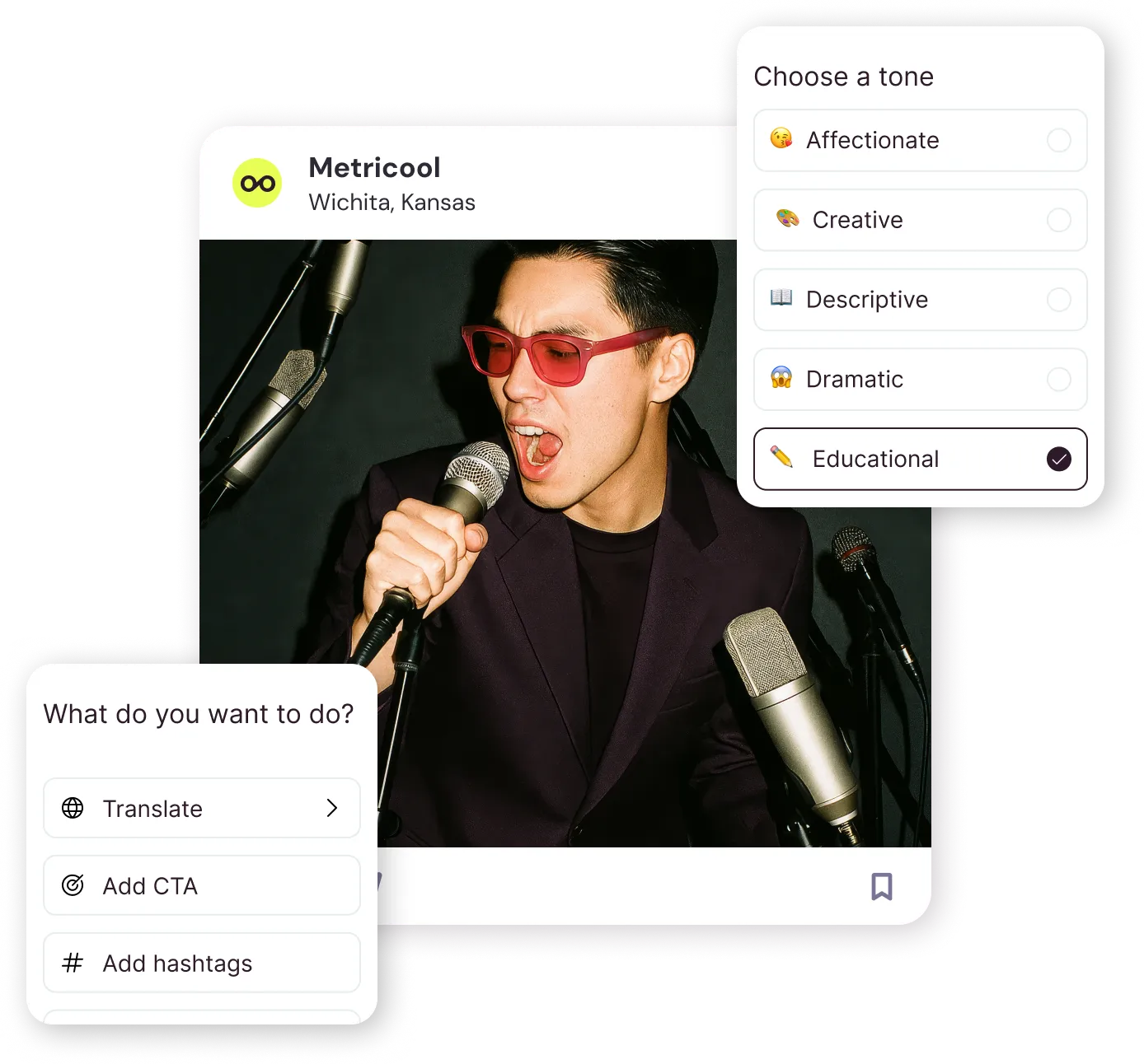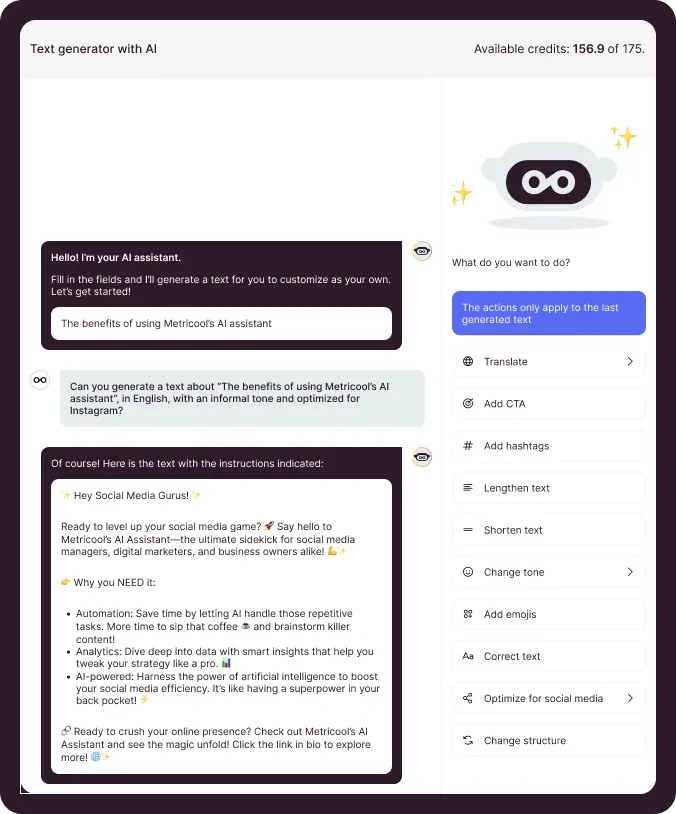 It is not magic. It is Metricool. An AI built to write like a social media pro.