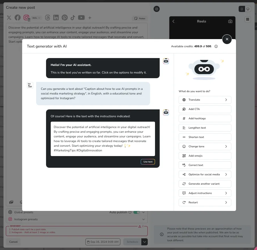 - Boost Creativity: Brainstorm campaign ideas, rewrite captions, or expand simple topics into full content series.