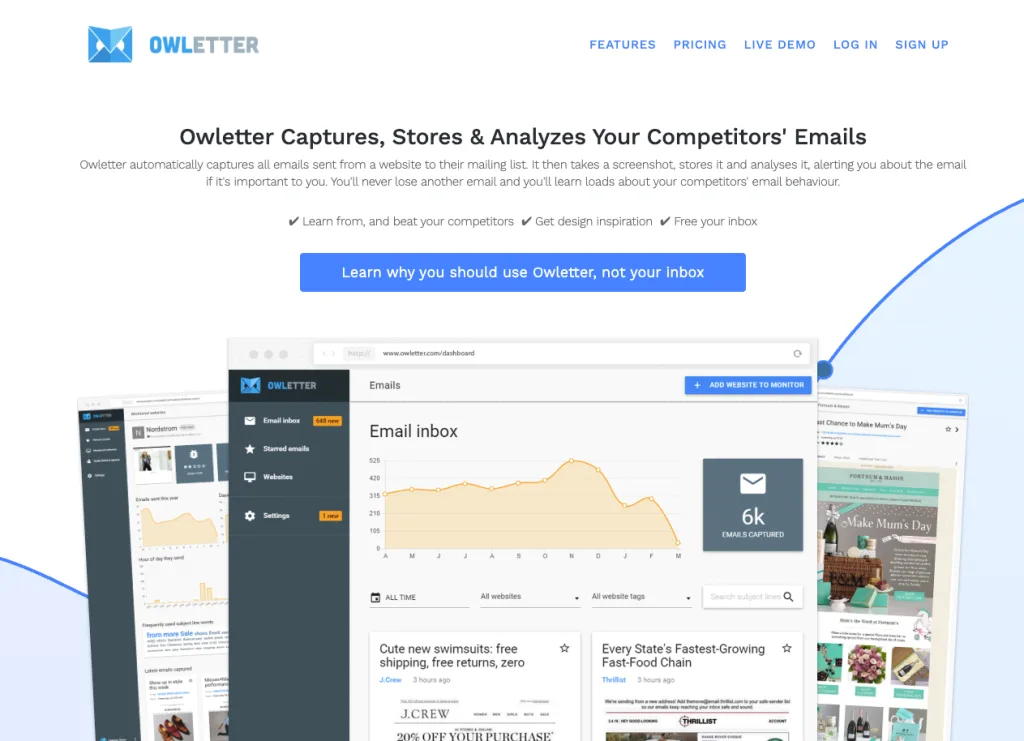 - Owletter: Automatically archive competitor emails to track frequency, timing, and promotions.