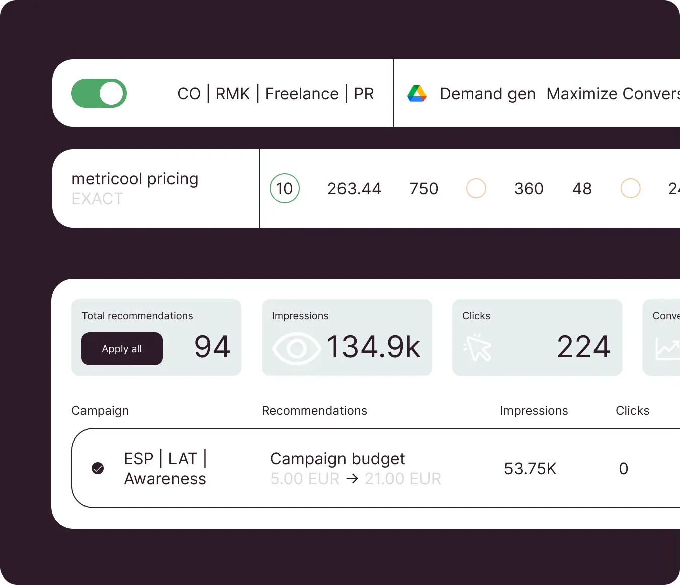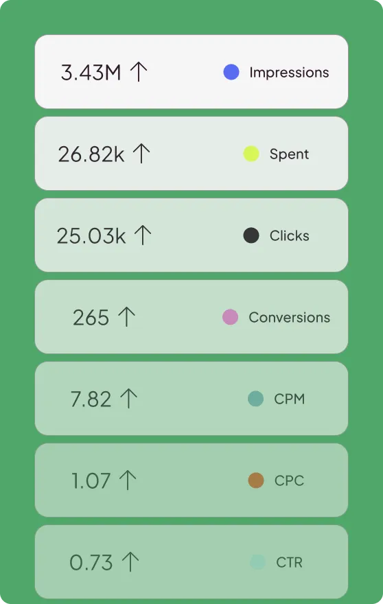 Erstelle, optimiere und überwache deine Anzeigen auf Google, Facebook und TikTok bequem an einem Ort.