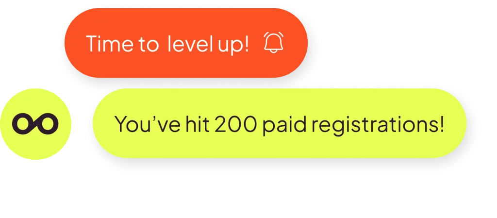 Um in Stufe 2 zu bleiben, bleib am Ball: Innerhalb von 12 Monaten nach deiner 200. Registrierung brauchst du weitere 100 bezahlte Registrierungen.