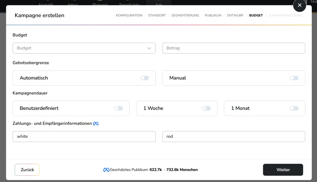 - Budgettyp: täglich oder für die gesamte Kampagne