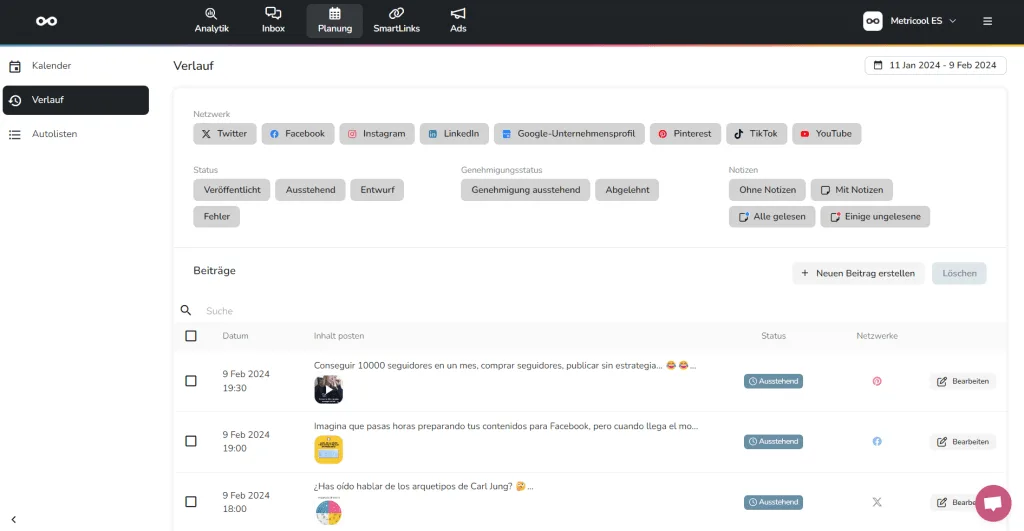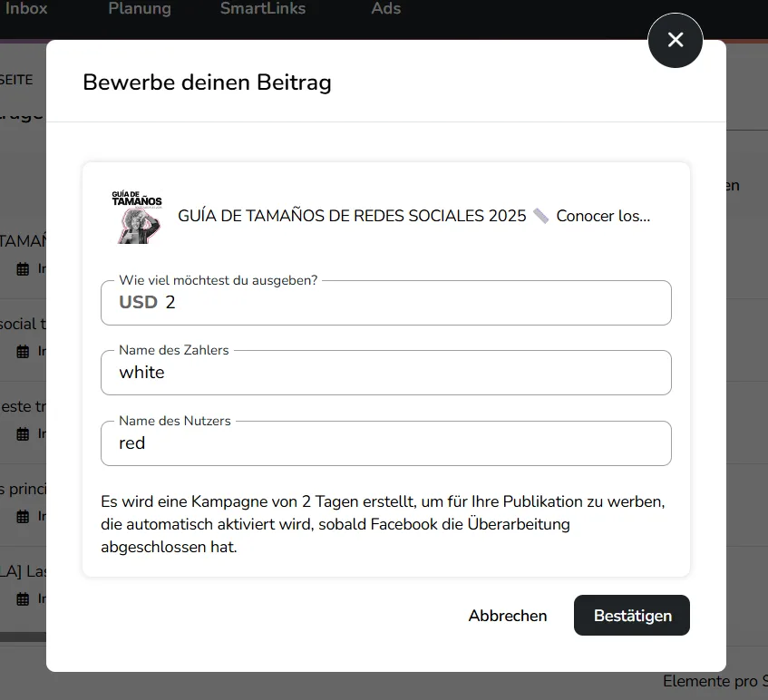 Wenn dein Beitrag noch nicht veröffentlicht ist, kannst du ihn direkt über Metricool planen und bewerben: