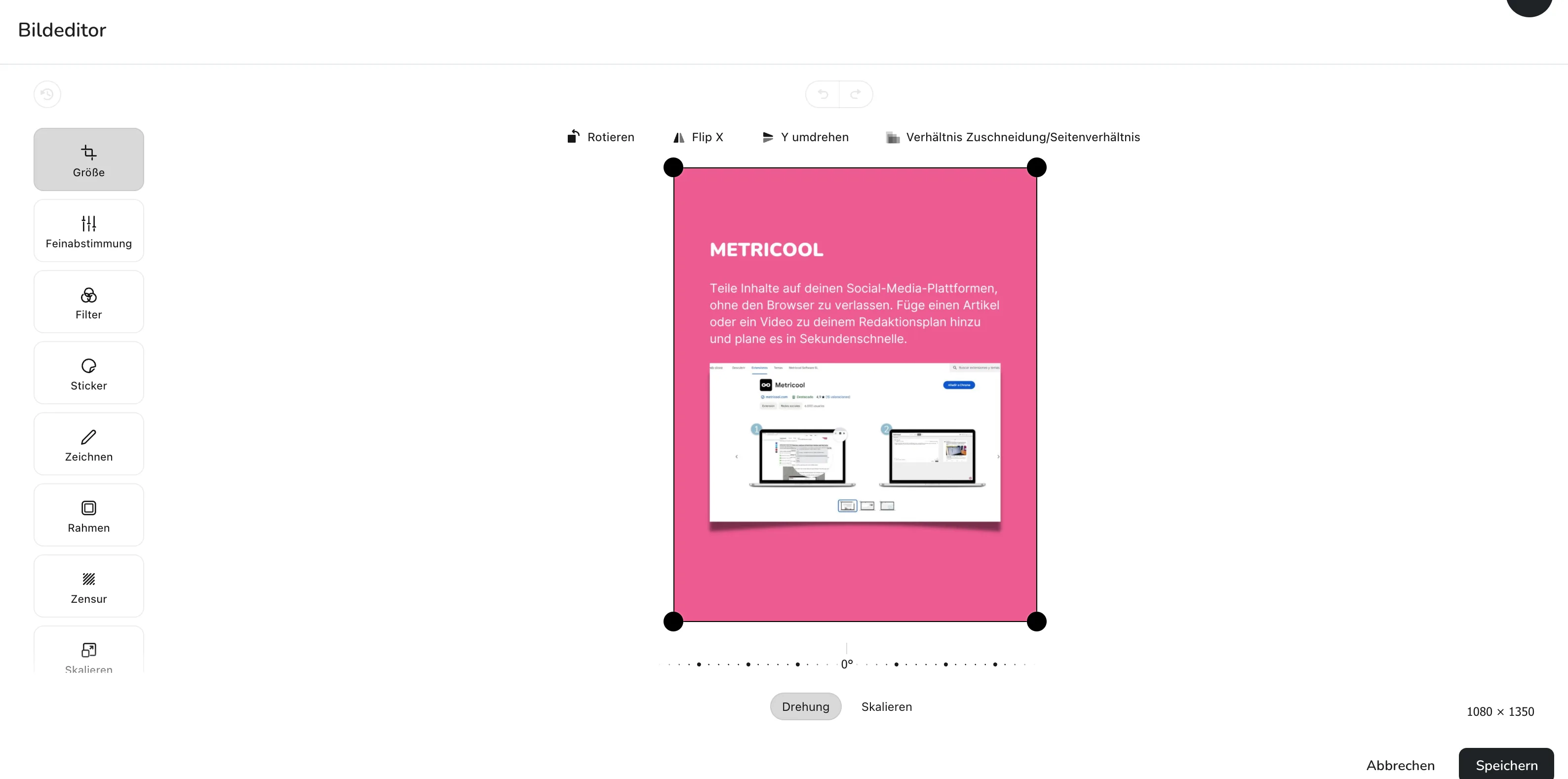 Bildbearbeitung mit Metricool Bildeditor