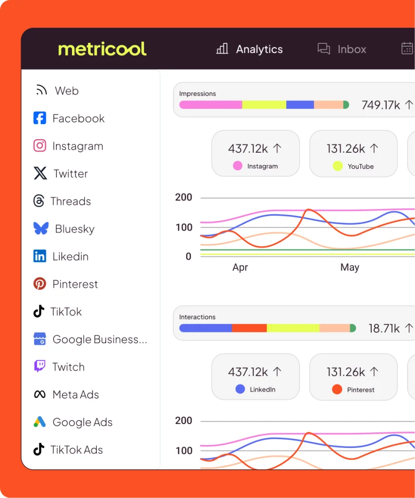 Nimm dir eine Minute und richte dein Metricool-Konto ein. So kannst du all deine Social-Media-Kanäle an einem Ort verwalten: Beiträge planen, Performance tracken, analysieren, Reports erstellen und sogar automatisieren. Sei produktiver und lass den Stress hinter dir.