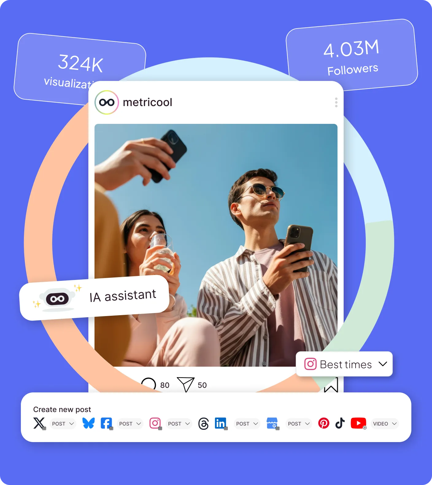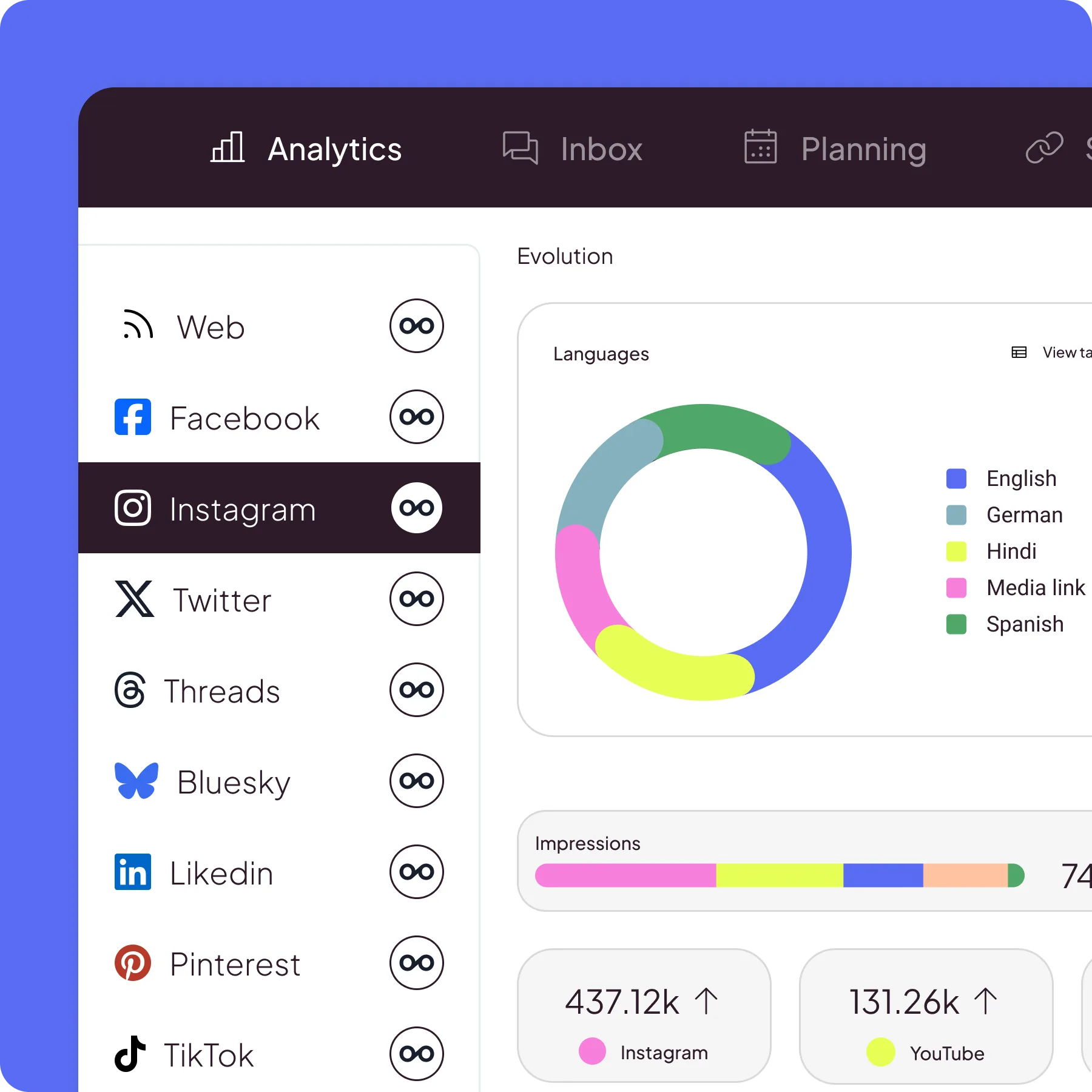 Mit einem Klick planst du Inhalte, analysierst ihre Performance in Echtzeit und steuerst Werbekampagnen DSGVO-konform über alle Kanäle hinweg – alles auf einer Plattform.