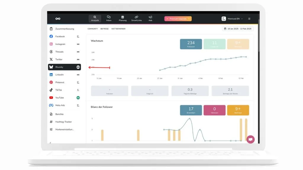 Und dann findest du folgende Bluesky-Metriken in Metricool: