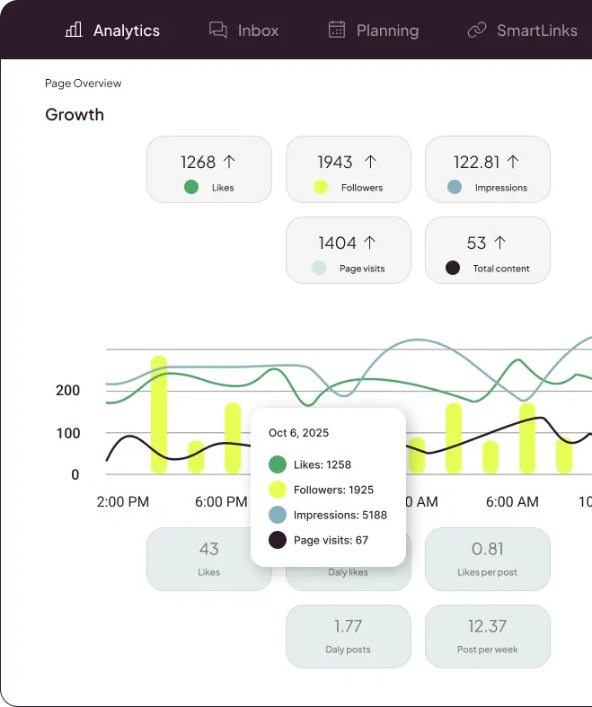 Analysiere und plane all deine Facebook-Posts mit Metricool. Behalte den Überblick, plane Inhalte für Monate im Voraus, beantworte Kommentare und verwalte deine Facebook Ads – ganz ohne Stress, alles in einem Tool.