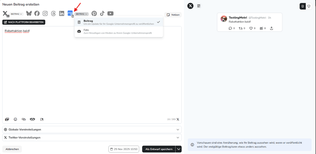 So planst du BeitrÀge auf Google Unternehmensprofil im Voraus mit Metricool