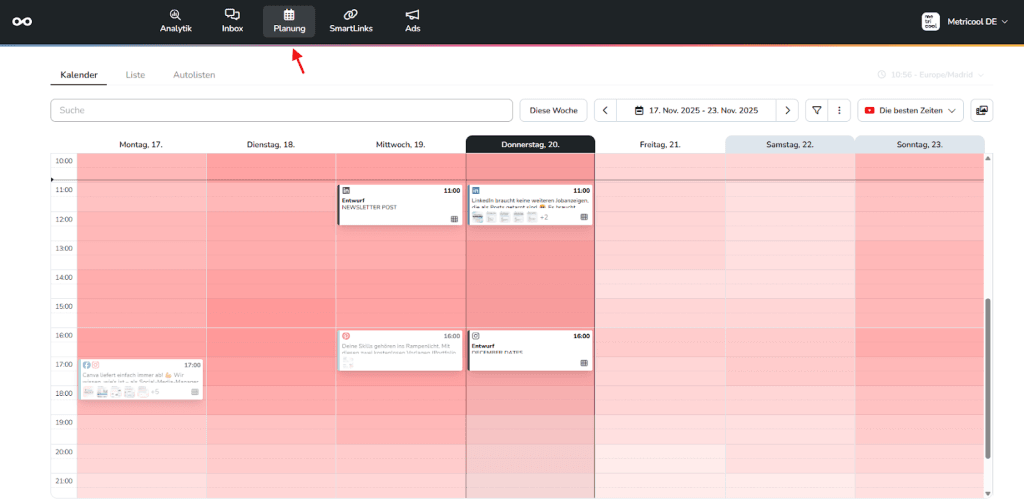 2. Zum Planer gehen: Klicke auf âPlanungâ. Hier siehst du einen Kalender mit all deinen geplanten BeitrĂ€gen.