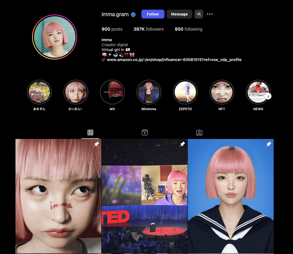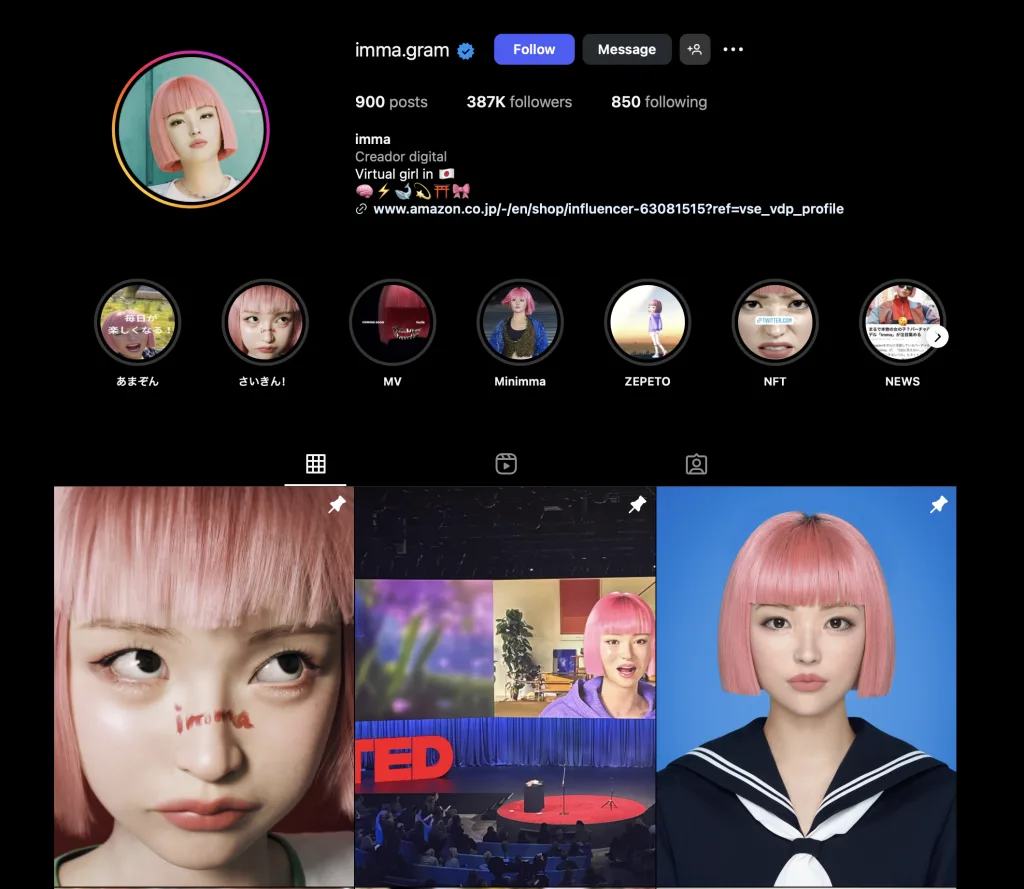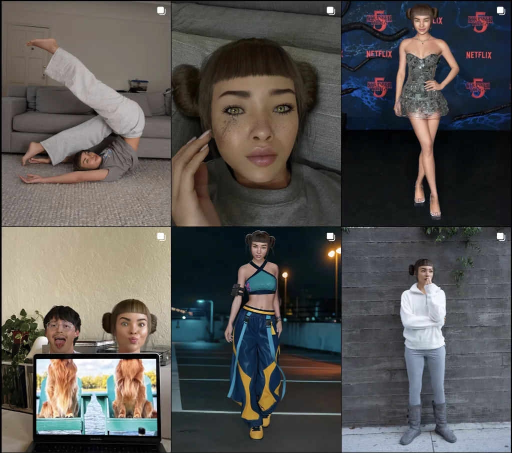 Eine der ersten und bekanntesten virtuellen Influencerinnen, mit über 2,4 Mio. Followern. Sie arbeitet regelmäßig mit großen Fashion-Marken wie Prada oder Calvin Klein. Ihre Storylines sind bewusst inszeniert, damit sie wie ein echter Creator wirkt. Ein gutes Beispiel für ästhetischen, gut geplanten KI-Content.