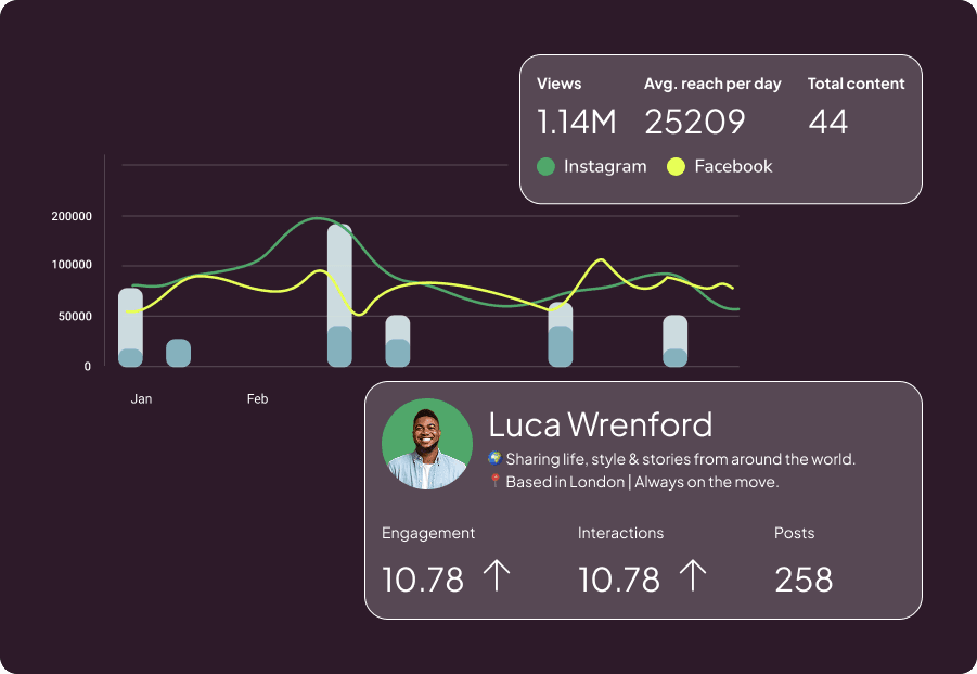 Mit Metricool planst du Inhalte, analysierst deine Performance, steuerst Werbekampagnen, erstellst automatische Reports, verwaltest Nachrichten und baust mühelos deinen Link-in-Bio – alles in einem Tool.