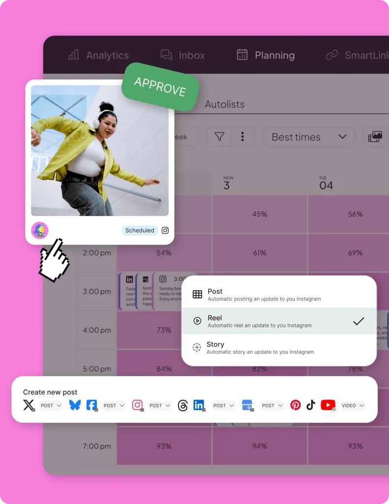 Der intelligente Planer existiert und hier ist er. Er ist viel mehr als nur ein Kalender, in dem du deine Inhalte planen kannst. Du kannst nach dem perfekten Hashtag suchen, mit deinem Team zusammenarbeiten und deine Inhalte bearbeiten.