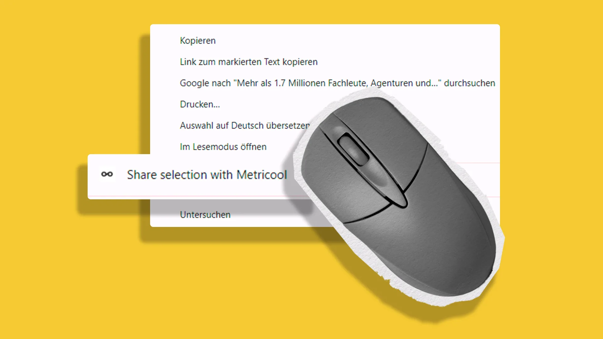 📌 Wähle den Text aus, den du zusätzlich zum Webseitenlink teilen möchtest, und klicke mit der rechten Maustaste. Dort erscheint die Option, mit Metricool zu teilen.