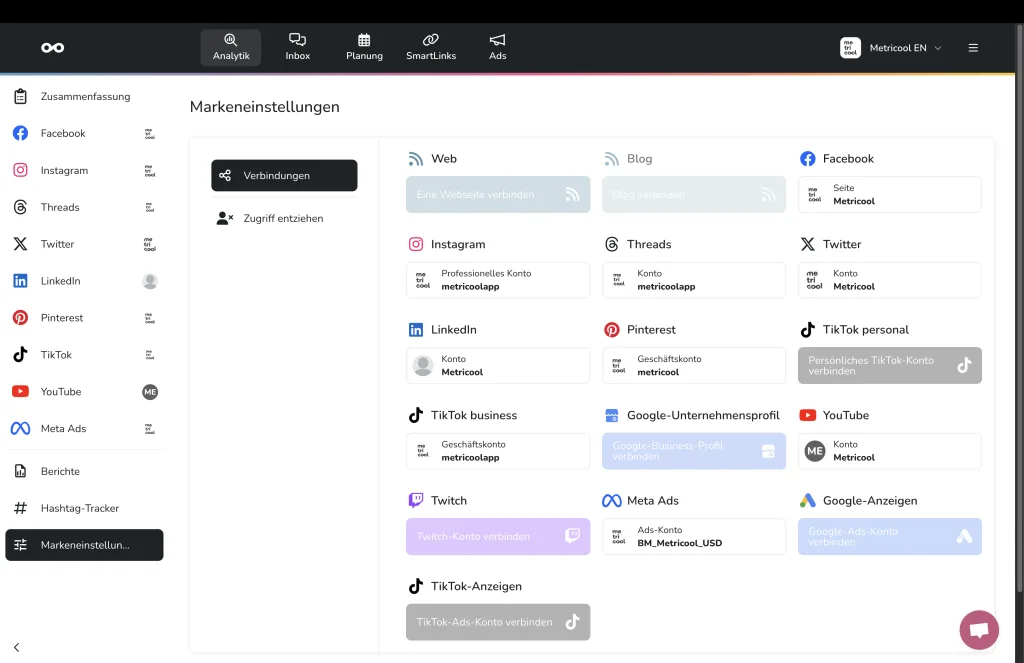 Verwalte verschiedene Social-Media-Konten von Metricool aus
