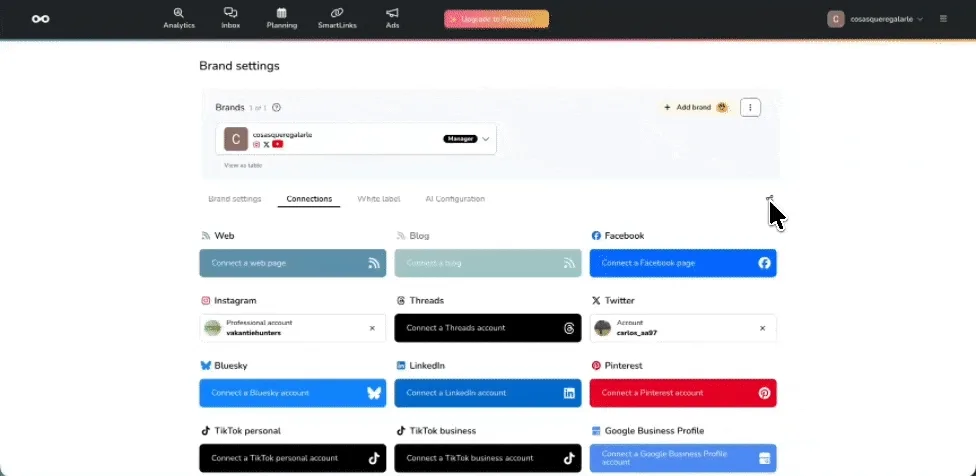 🔗Teile eine URL, um Social‑Media‑Konten mit einer Marke zu verbinden