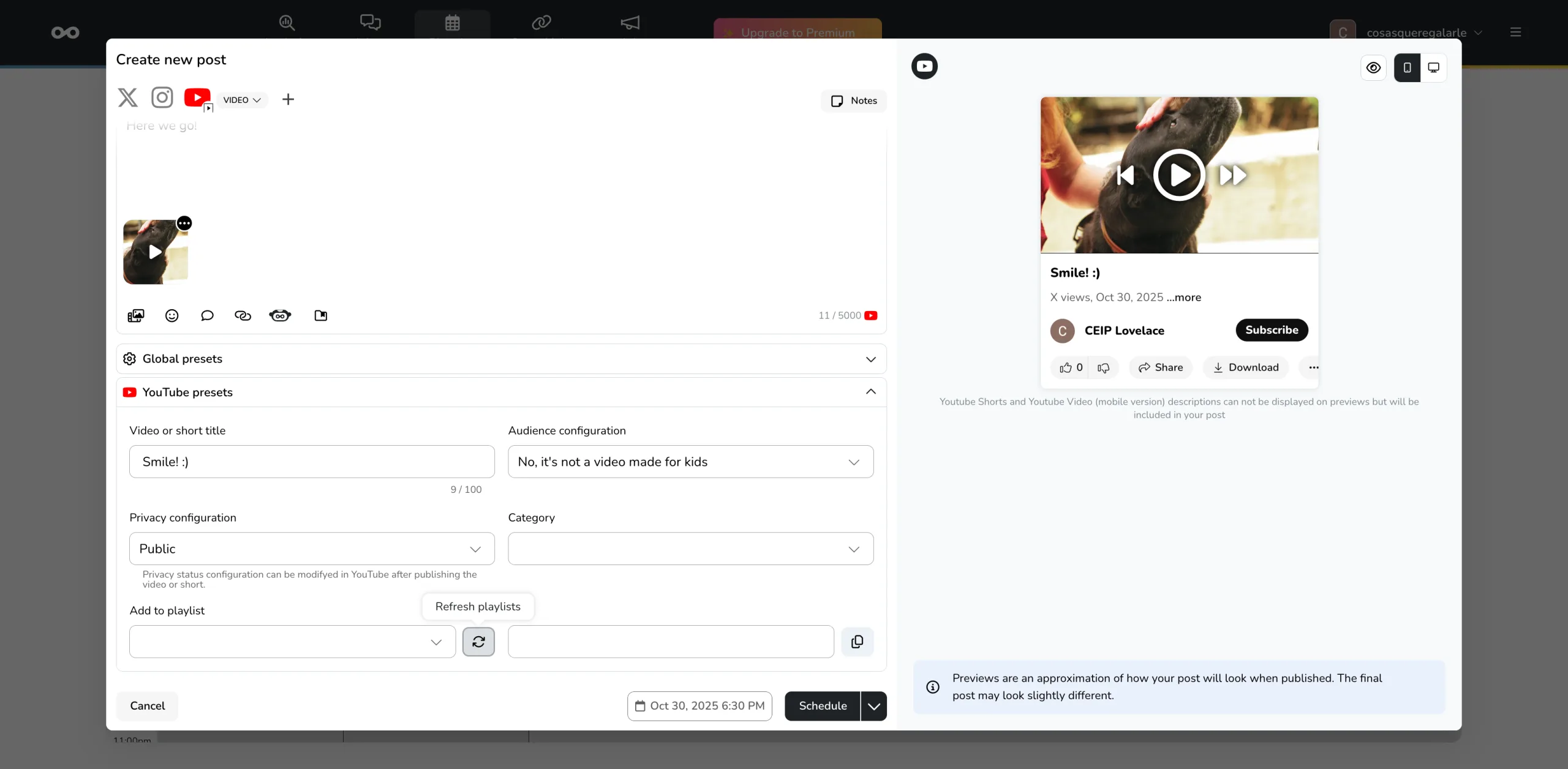 Letzten Monat haben wir ein neues Feature veröffentlicht, mit dem du geplante YouTube-Videos direkt zu einer Playlist hinzufügen kannst.