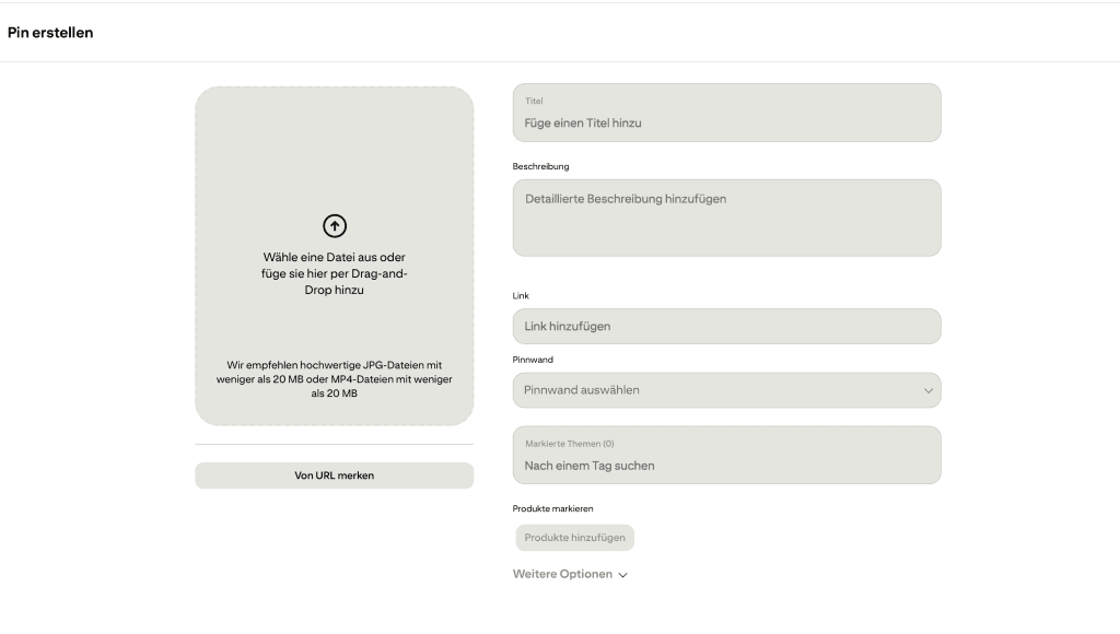 - Pinterest akzeptiert PNG oder JPG und zeigt dir sofort eine Vorschau.