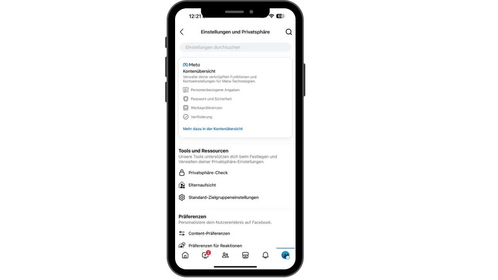 - Tippe auf „Meta Kontenübersicht“ und dann auf „Profile“.