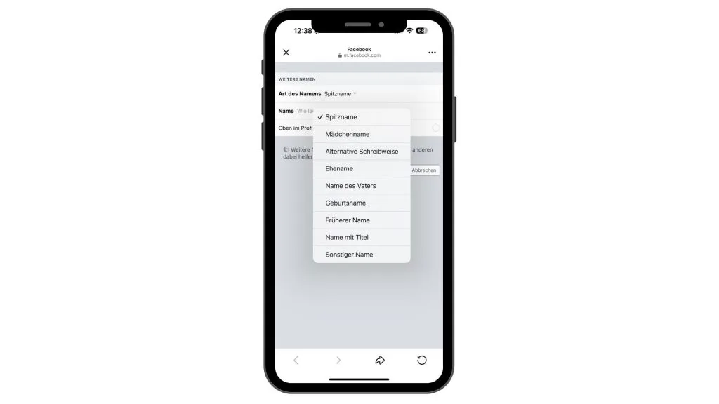 💡Ein sprachspezifischer Name wird angezeigt, wenn jemand Facebook in der entsprechenden Sprache nutzt.