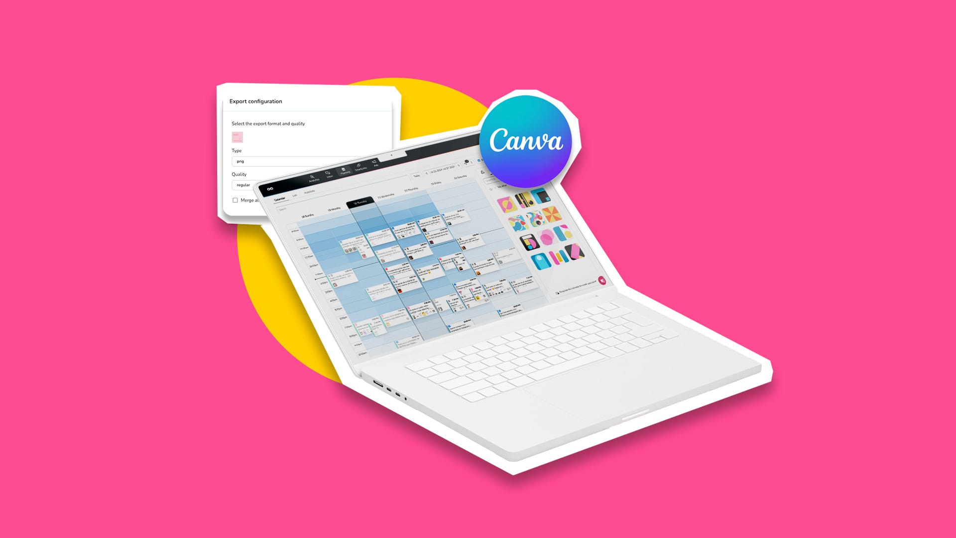 Wähle die gewünschten Grafiken aus und ziehe sie in den Kalender, um sie zu exportieren. Du kannst so viele Designs hochladen, wie du möchtest, aber beachte, dass das auch von den Einschränkungen des jeweiligen Netzwerkes abhängt.