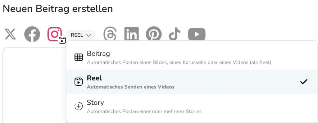 Denke daran, dass du mit Metricool nicht nur Instagram Reels posten kannst, sondern auch alle anderen Instagram-Formate.
