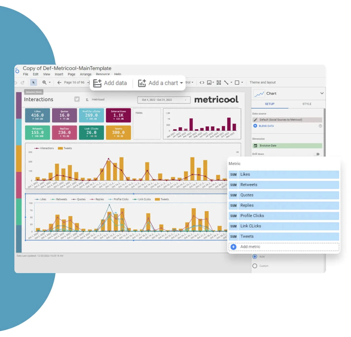 Der Metricool Data Studio Connector ist die Lösung: Hunderte Datenquellen, gebündelt – damit Analysen endlich Spaß machen.