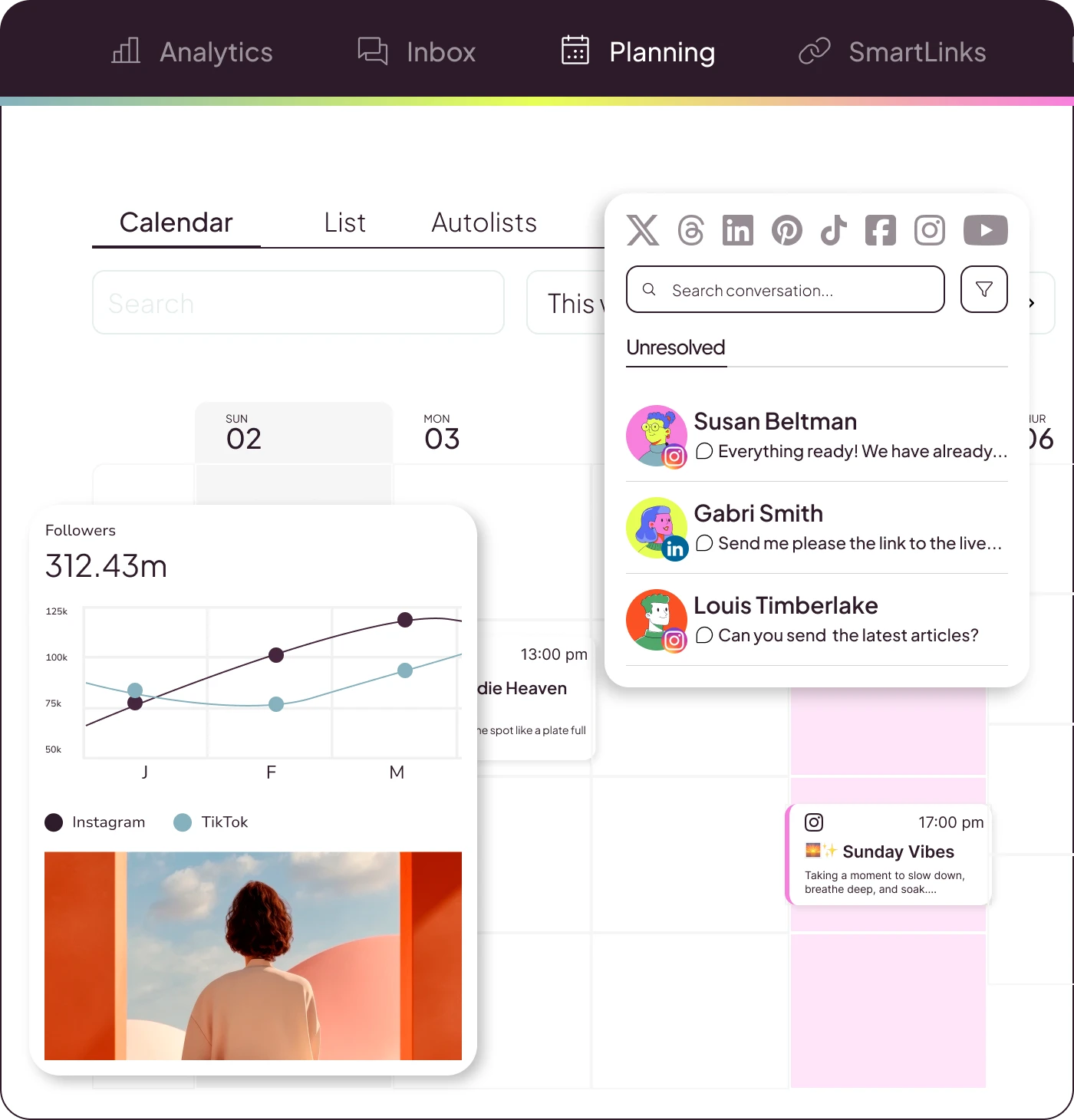 Social Media soll dir helfen zu verkaufen – nicht deine Zeit rauben. Mit Metricool gewinnst du neue Kunden, planst deine Inhalte effizient und verwandelst Interaktionen in echte Ergebnisse.