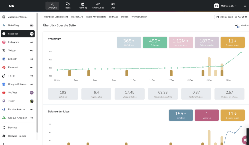 Mit Metricool kannst du dir folgende Metriken anzeigen lassen: