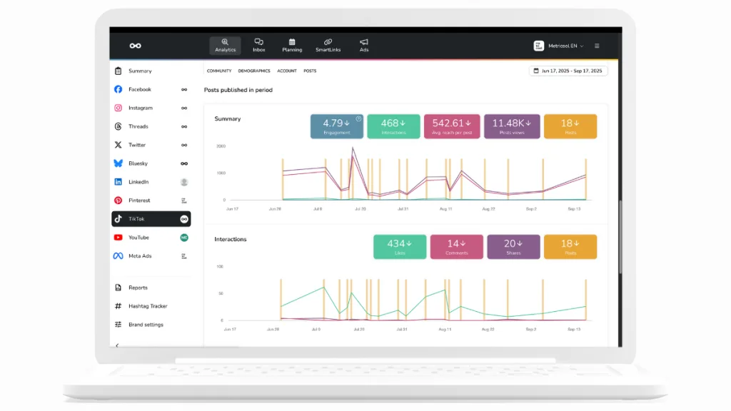 💡 Tipp: Kombiniere TikToks KI-Tools mit Metricool, um deine KI-Videos direkt zu planen, zu analysieren und Trends zu verfolgen. So siehst du genau, welche Clips die meiste Reichweite und Interaktion erzielen.