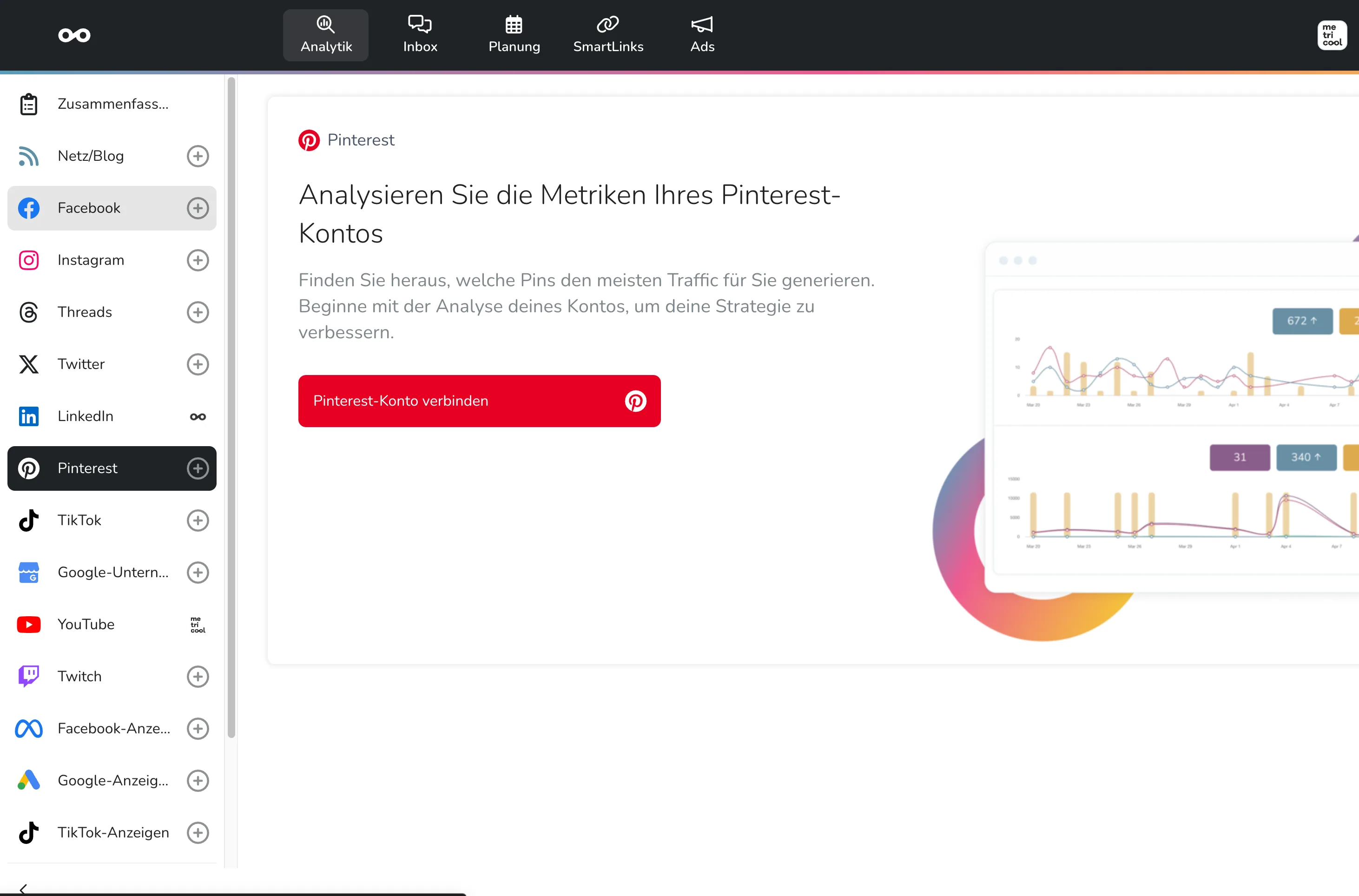 Wenn ja, dann ist dieser Beitrag genau das Richtige für dich. Wir zeigen dir, wie du Pinterest mit Metricool verbindest.