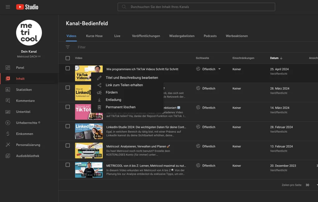 Die erste Option, die wir vorstellen möchten, erfolgt über YouTube Studio: