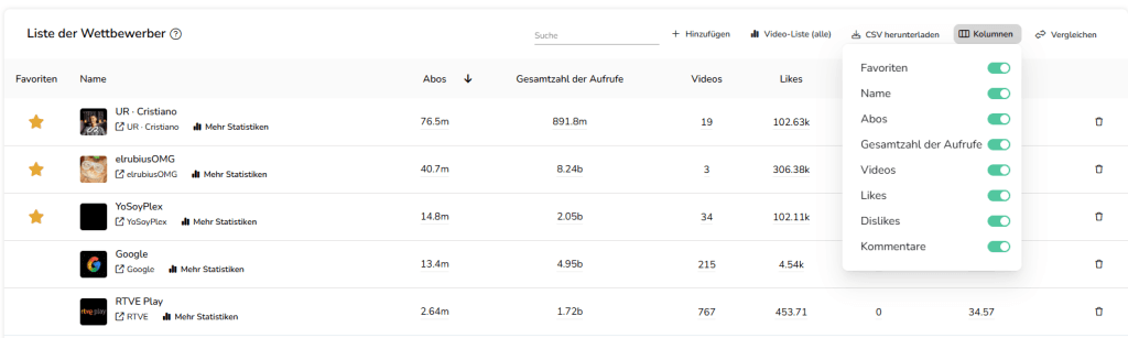 Diese Daten sind Gold wert, um deine eigene YouTube-Strategie zu optimieren oder sogar komplett neu aufzubauen, falls du noch keine hast.