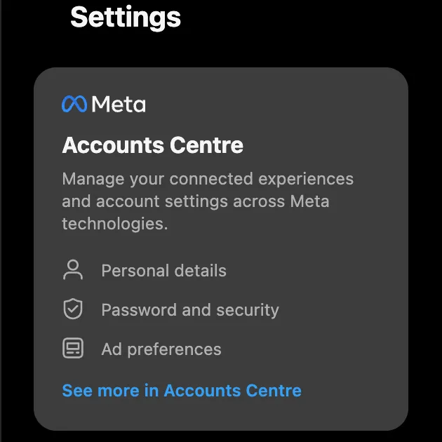 - Then, click on the Meta Accounts Center.