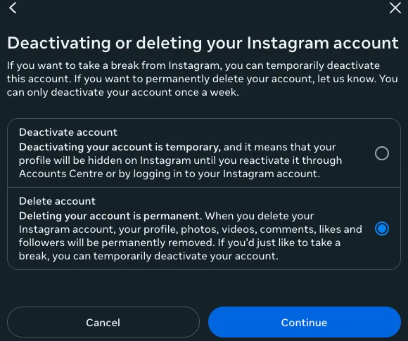What happens when you delete your Instagram account?