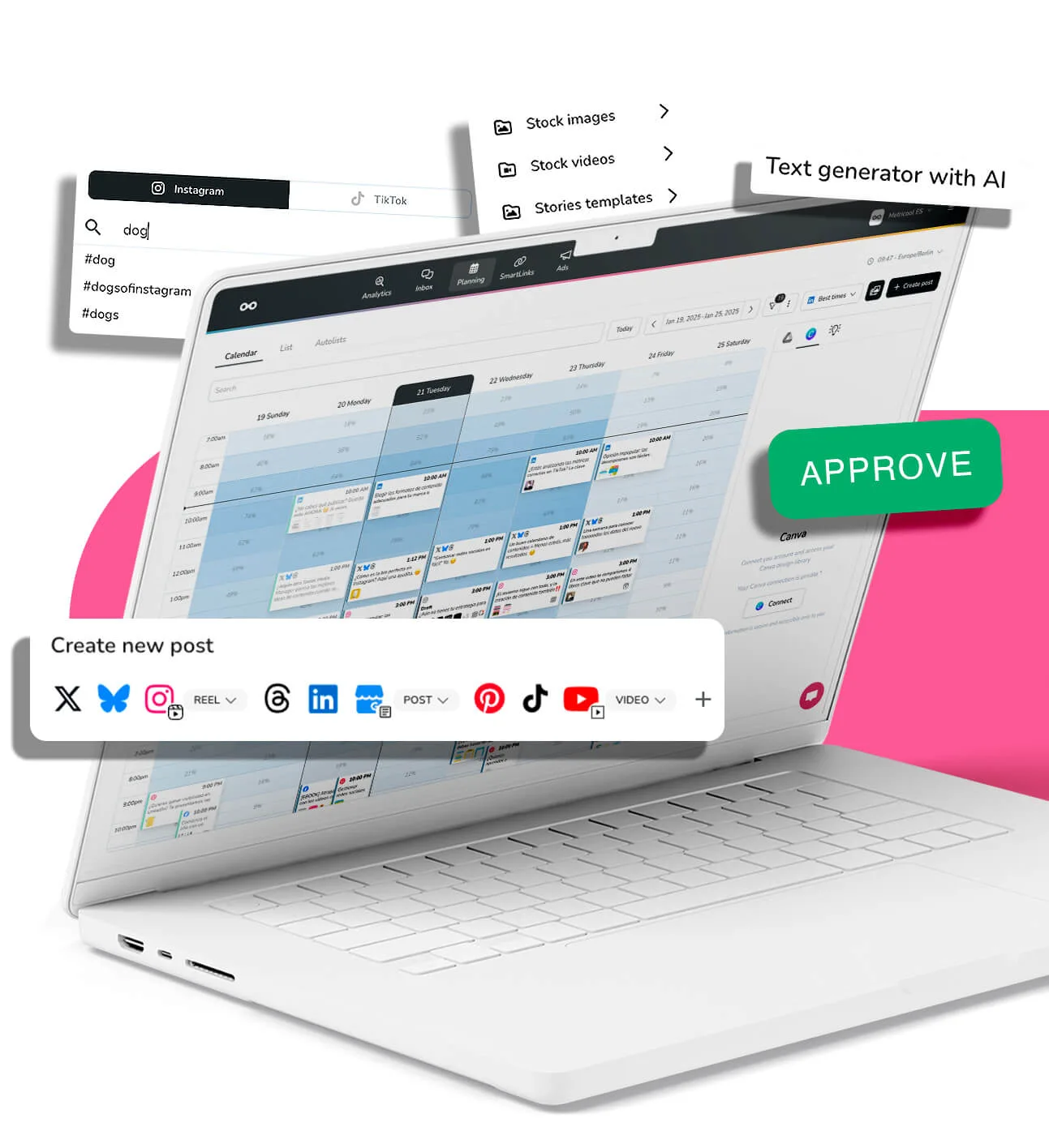 Explora plantillas, crea piezas de impacto y publícalas en el mejor momento para tu audiencia. Todo sin salir de Metricool.
