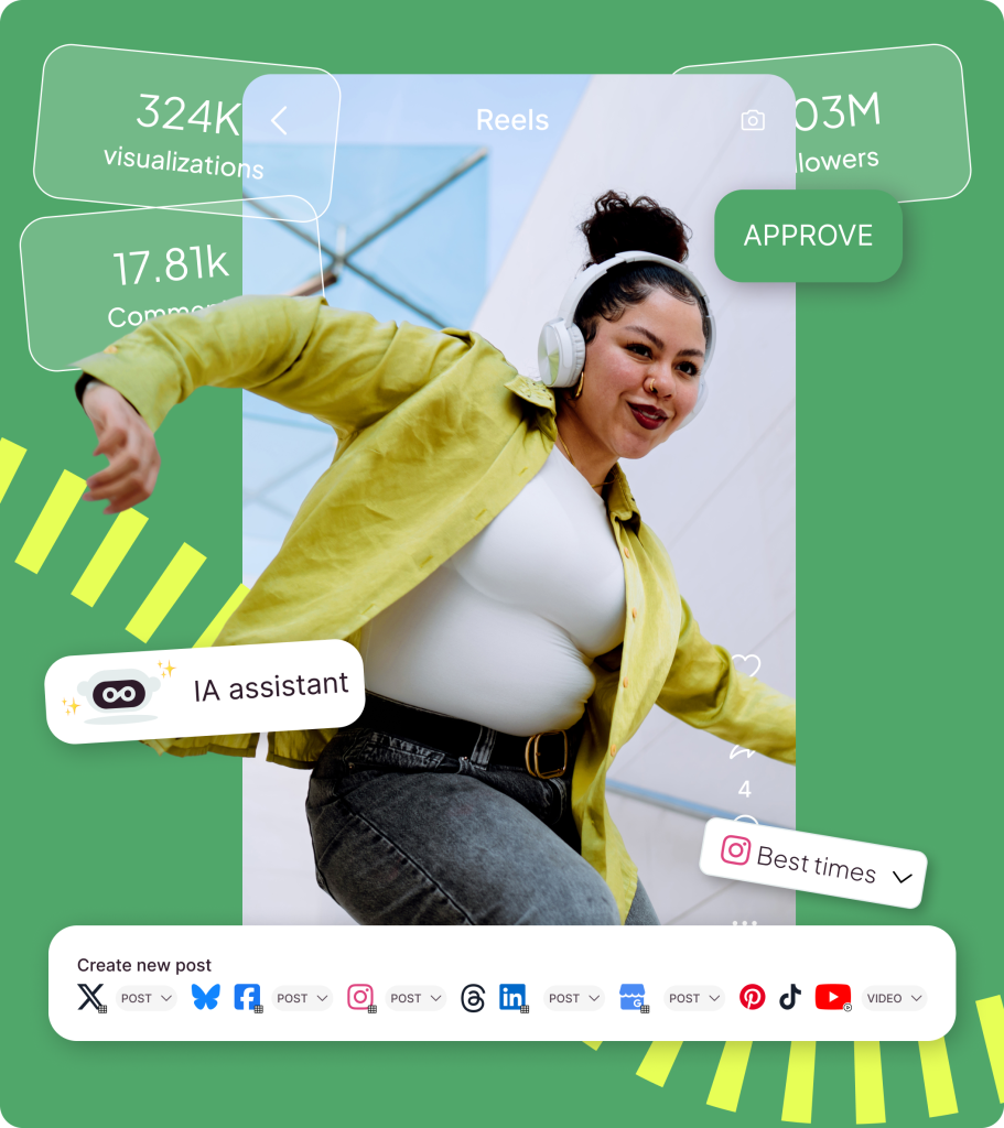Haz crecer las cuentas de tus clientes sin dejarte la vida en ello. Programa, analiza, crea, responde y reporta… desde un solo sitio.