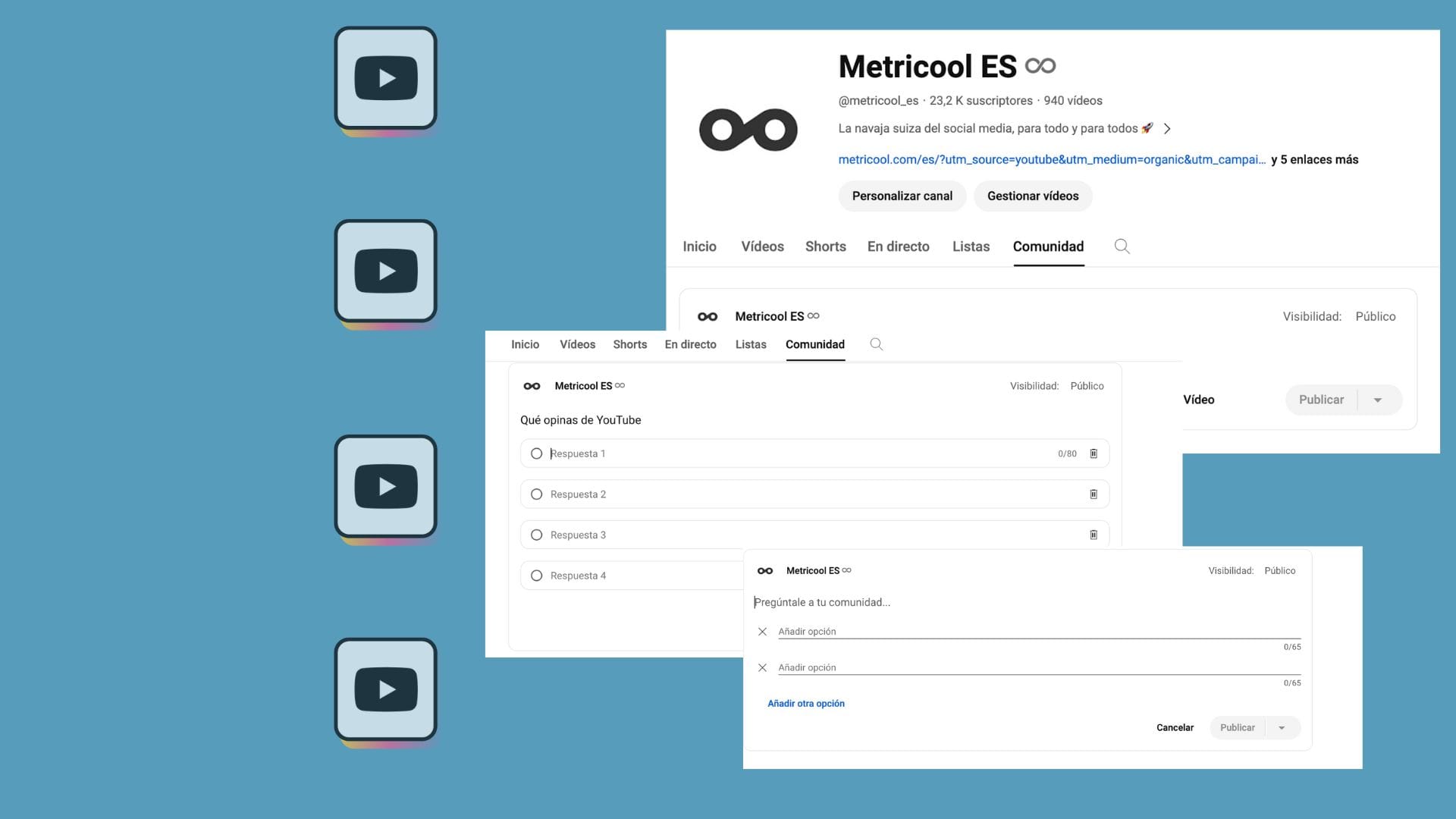 Usa las encuestas para descubrir qué opinan sobre tus vídeos, la duración, el contenido o incluso el tono. Al final, son quienes van a recibir y ver tus vídeos y qué mejor forma de medir su satisfacción que con una encuesta.