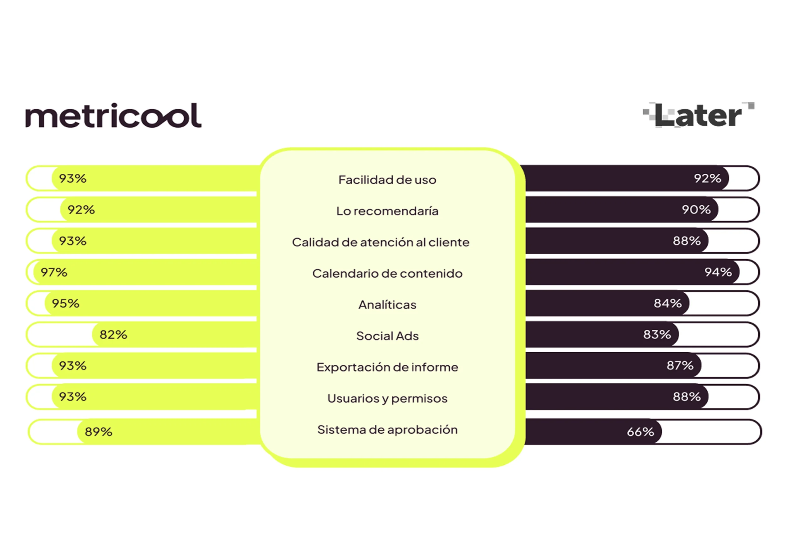 Con Later planifica en hasta 8 redes sociales por $16.67 al mes. Sin embargo, si buscas un análisis profundo de las cuentas de tus clientes y sus competidores, para eso mejor con Metricool (y gratis).