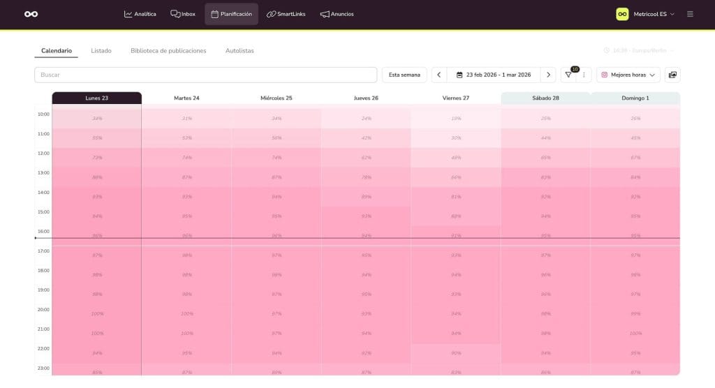 En Metricool tienes la opción de ver las mejores horas.