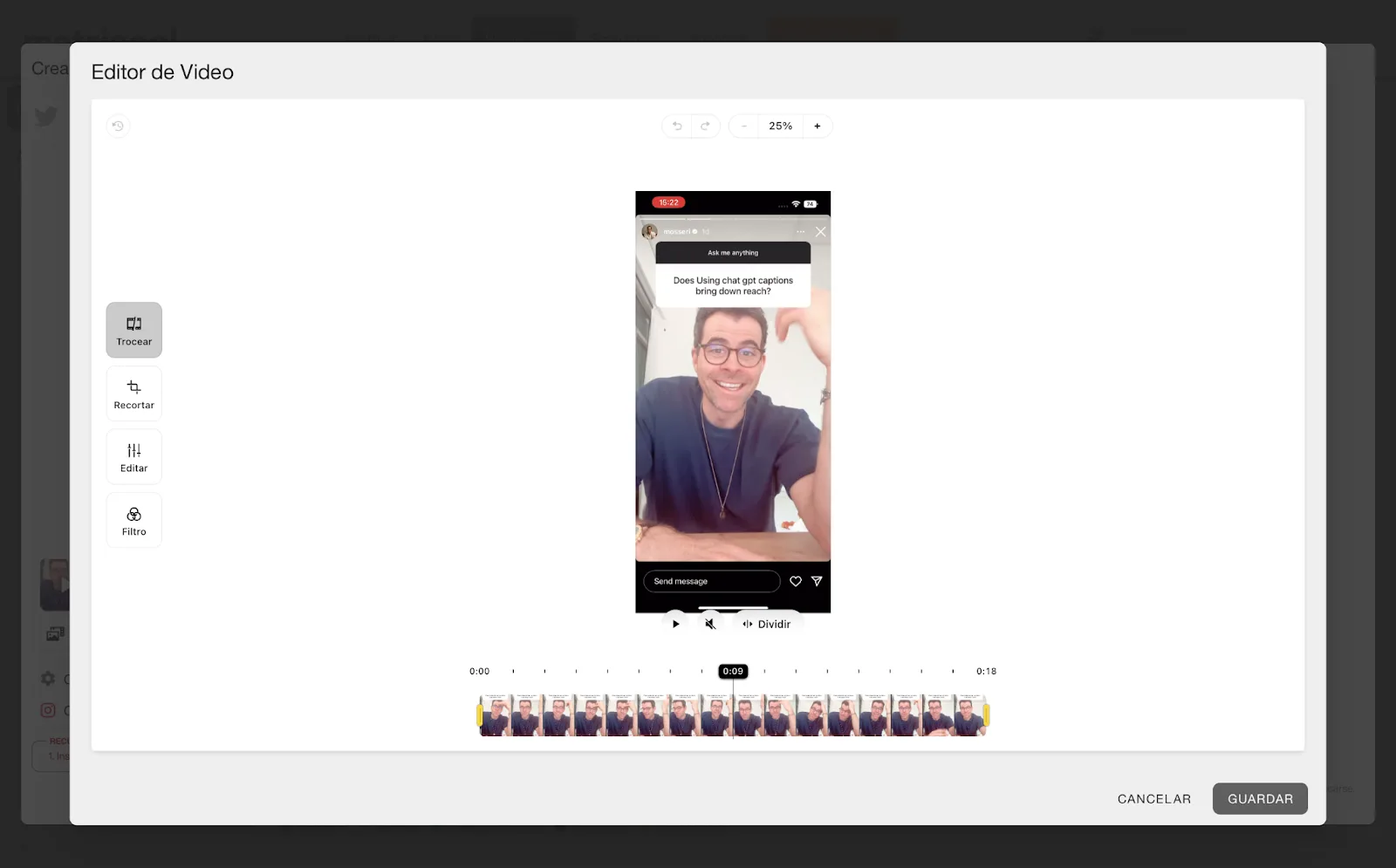Con esta funcionalidad el objetivo es que ahorres tiempo en tu gestión de redes sociales. Ya no necesitas un editor externo para tu video.
