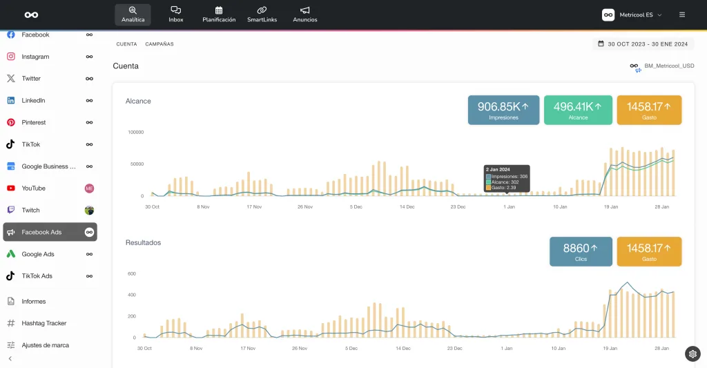 Ventajas de usar Metricool para tus informes de Facebook Ads