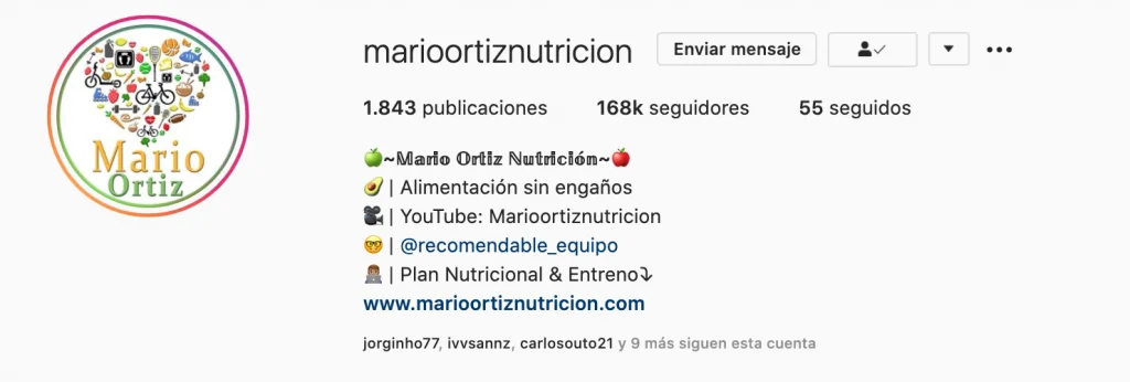 EJEMPLO: Es el caso de Mario Ortiz, nutricionista que ha ido creciendo desde cero con su perfil de Instagram a base de consejos, historias y tips para llevar una nutrición saludable.