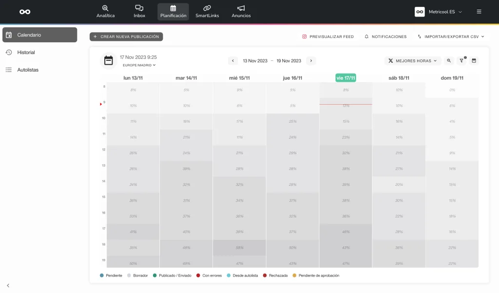 Si llevar a cabo este trabajo te resulta complicado te recomendamos que pruebes la planificación de contenido con Metricool. De esta forma solo tienes que programar en el calendario tus posts y Metricool los autopublica, así te aseguras tener siempre contenido listo en tu perfil.
