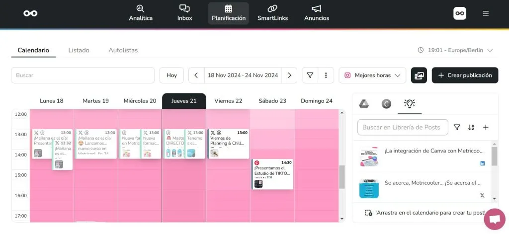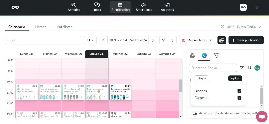 - Agiliza tu flujo de trabajo: Crea plantillas de publicaciones ya configuradas para cada una de tus redes sociales.