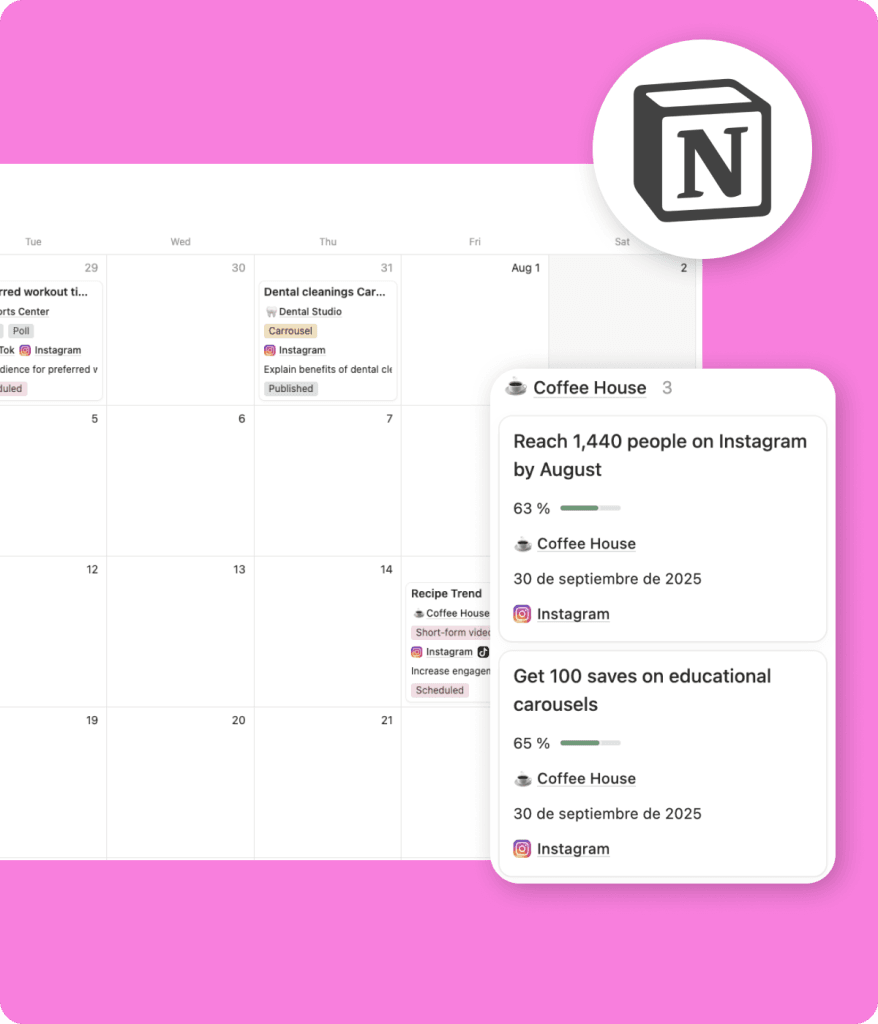 Todo tu trabajo como social media manager en un único lugar, claro, visual y sin distracciones.