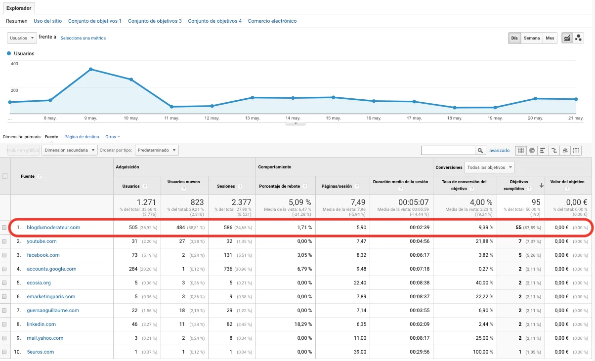 Para explicar el motivo, vamos a ver un caso real de uno de nuestros anunciantes de getfluence para el objetivo: tráfico calificado y visibilidad.