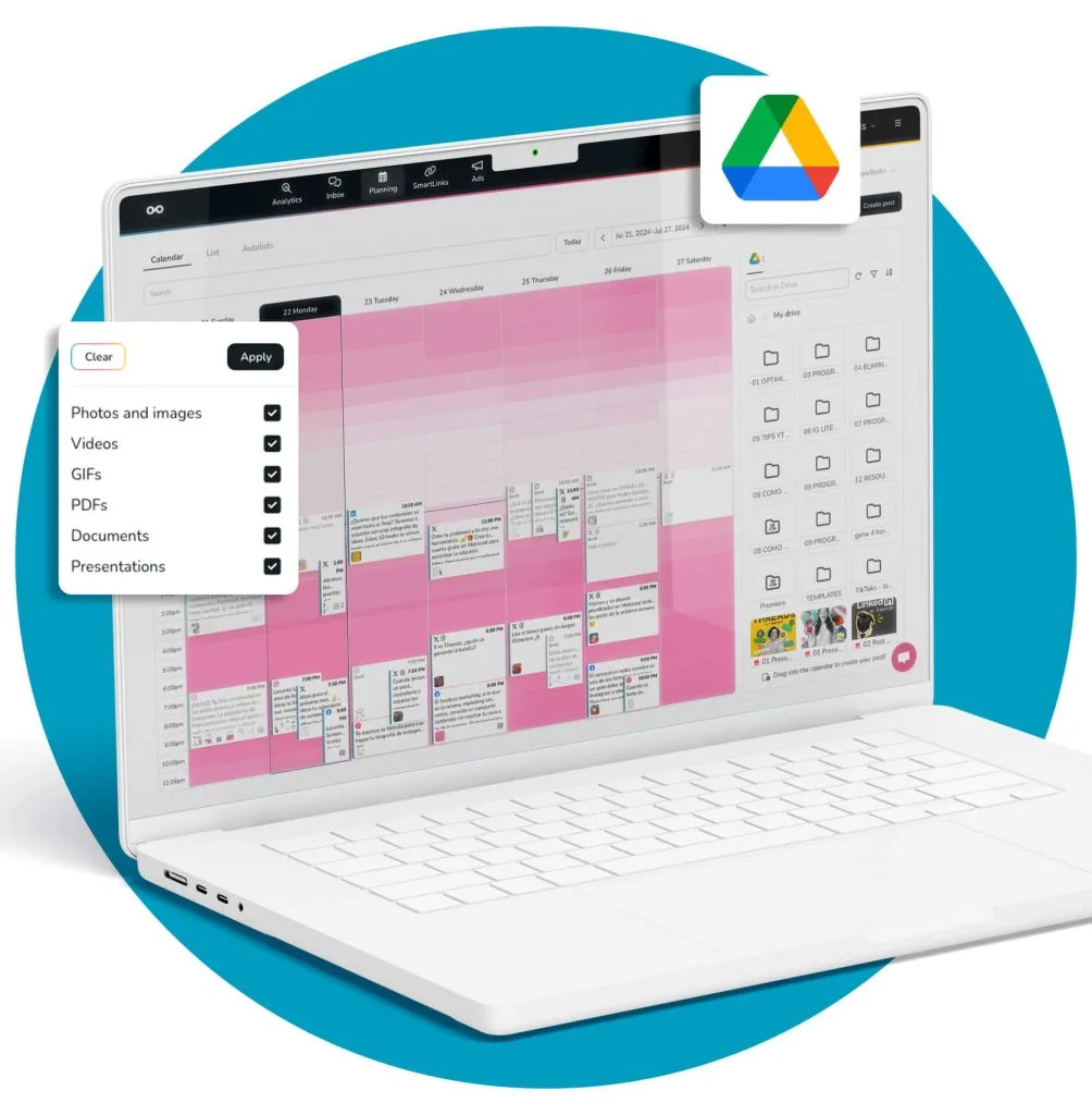 La segunda opción para la planificación masiva de contenido de tus redes sociales es a través de Google Drive. Con esta función, puedes conectar tus archivos de Google Drive directamente con Metricool para una planificación de contenidos perfecta. Sirve para programar tanto un solo contenido como varios a la vez.