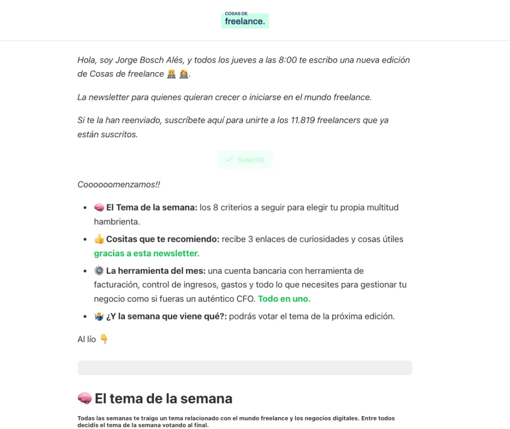 Cosas de freelance, así se llama la newsletter de Jorge Bosch. Pensada para freelancers o personas que están dando sus primeros pasos en este mundillo